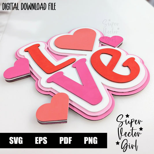 Layered Love Door Hanger Sign, SVG, Laser Cut File, Valentine's Day, Wall Decor Home Decoration, xTool Glowforge files, Heart Shelf Sitter