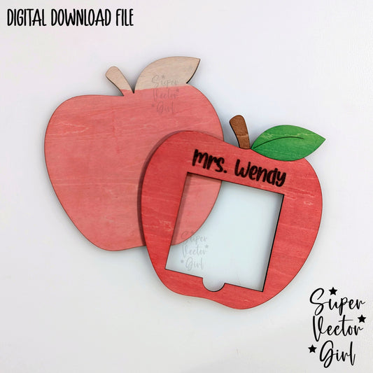 Apple Sticky Note Holder SVG File, Personalized Teacher Appreciation Gift, Digital Laser Cut File, xTool Glowforge files, Custom Name Post It Notes
