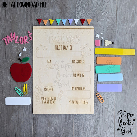 First Day Of School Sign, Personalized Back To School Board, SVG Laser Cut File, xTool Glowforge files, Custom Name, Reuseable Wipe Clean Dry Erase