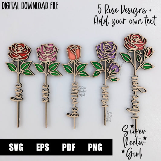 Rose Laser Cut File SVG Valentine's Day Mother's Day Anniversary Valentine Digital xTool Glowforge files Flower Personalized Name Text Love