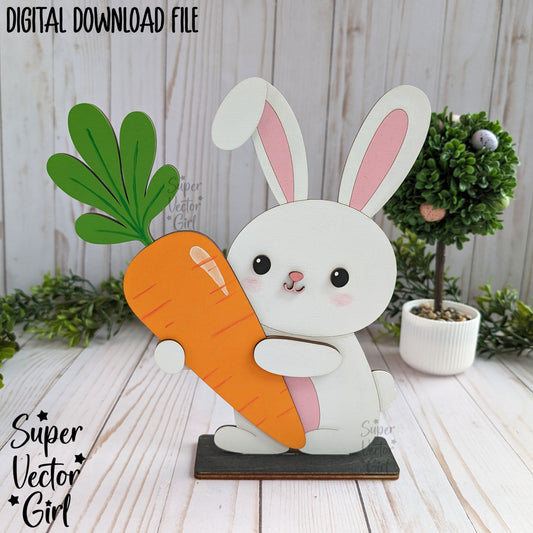Easter Bunny Holding a Carrot Shelf Sitter, SVG, Laser Cut File, Cute Easter Rabbit, Spring Sign, Tiered Tray, Table Decoration, Home Decor, Shelf Sitters Files, Family Name Sign