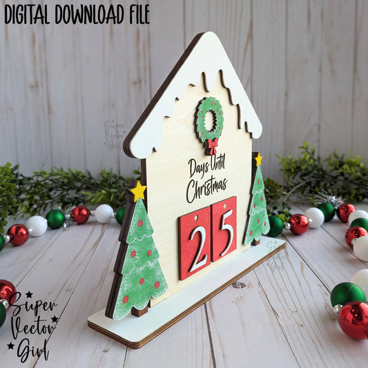 Christmas Countdown House, SVG, Laser Cut File files, Count down to Christmas, Advent Calendar, Farmhouse Rustic, Wooden Home, Wreath Tree