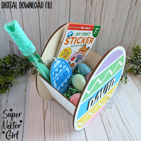 Egg Shaped Easter Basket Crate, Easter Treats Box, SVG, Laser Cut File files, Cute Decorated Egg Shape Bin, gift box, spring, food
