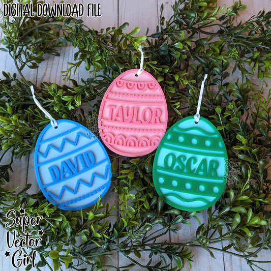 Easter Egg Basket Tags, SVG, Laser Cut File, Cute Eggs Name Tag, Gift Tag, Personalized Charm, Hanger, Ornament Name, Kids Basket Tags