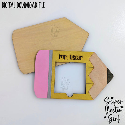Pencil Sticky Note Holder SVG File, Personalized Teacher Appreciation Gift, Digital Laser Cut File, xTool Glowforge files, Custom Name Post It Notes