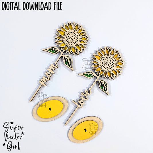 Sunflower with Stand SVG Laser Cut File, Mother's Day Mom Valentine's Day Anniversary Birthday Digital xTool Glowforge files Flower Love Name Gift
