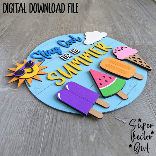 Stay Cool for the Summer Door Hanger Sign, SVG, Laser Cut File, xTool Glowforge files, Wall Decor, Accent Home Decoration, cute sun popsicle hanging