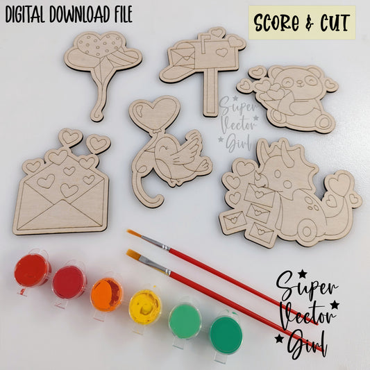 Valentine's Day DIY Paint Kit Set 1, Valentine SVG, Digital Laser Cut File, xTool Glowforge files, Score & Cut, Cute dinosaur panda bird