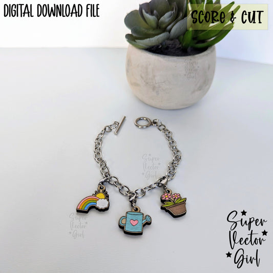 Spring Bracelet Charms Bundle Set, SVG, Digital Laser Cut File, Score & Cut, Cute rainbow sun flowers gardening can daisy mom