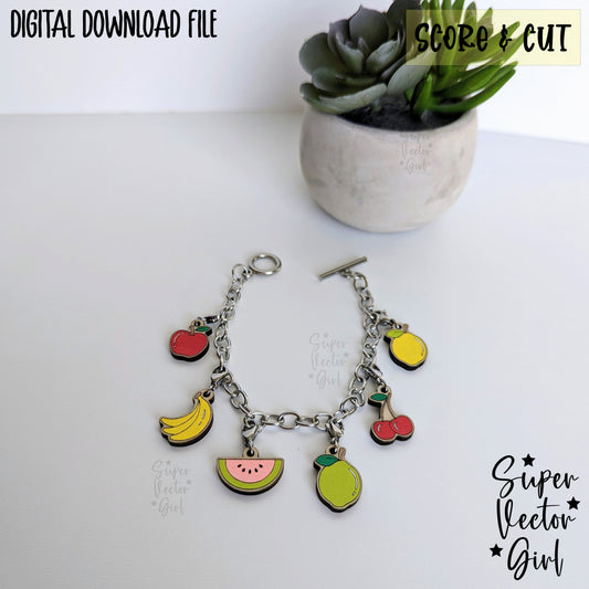 Fruits Set 2 Bracelet Charms Bundle Set, SVG, Digital Laser Cut File, xTool Glowforge files, Score & Cut, Summer Fruit Apple Lemon Lime Watermelon
