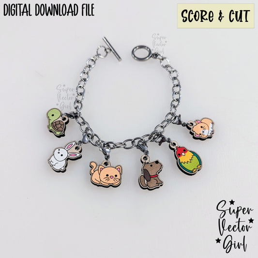 Pets Animals Bracelet Charms Bundle Set, SVG, Digital Laser Cut File, xTool Glowforge files, Score & Cut, cat dog bird turtle DIY Make Your Own Charm