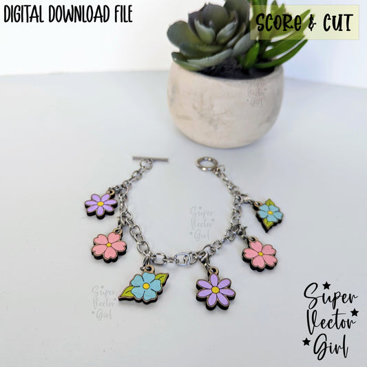Floral Flowers Bracelet Charms Bundle Set, SVG, Digital Laser Cut File, xTool Glowforge files, Score & Cut, Cute Spring Flower Daisy Mom Mother's Day