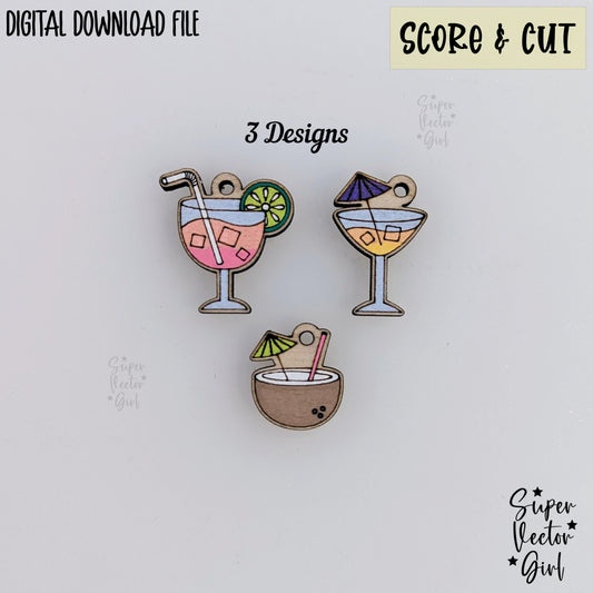 Cocktail Bracelet Charms Bundle Set, SVG, Laser Cut File, xTool Glowforge files, Score & Cut, Cute Summer Mixed Drinks Martini Coconut Alcohol Booze