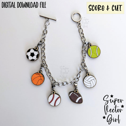 Sports Ball Bracelet Charms Bundle Set, SVG, Digital Laser Cut File, xTool Glowforge files, Score & Cut, football baseball soccer basketball tennis