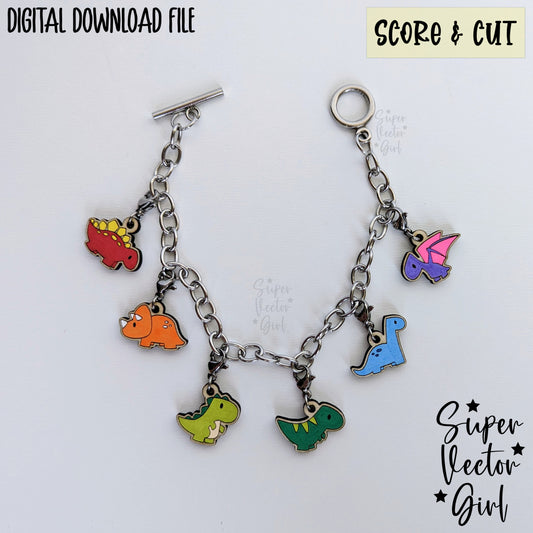 Dinosaurs Bracelet Charms Bundle Set, SVG, Digital Laser Cut File, xTool Glowforge files, Score & Cut, Funny Cute Dino T Rex DIY Make Your Own Charm