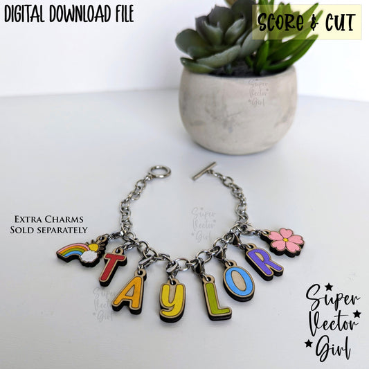 Alphabet Letters Bracelet Charms Bundle Set, SVG, Digital Laser Cut File, xTool Glowforge files, Score & Cut, Name Word ABCs DIY Make Your Own Charm
