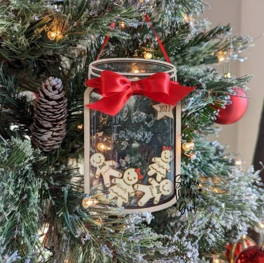 Mason Cookie Jar Shaker Christmas Ornament, Gingerbread Family Cookies With Pets Cat Dog, SVG, Digital Laser Cut File files