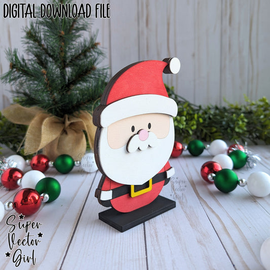 Cute Christmas Santa Shelf Sitter Sign, SVG, Laser Cut File, Glowforge xTool files, Porch Sign, Home Decor, Table Mantle Decoration, Winter Holidays