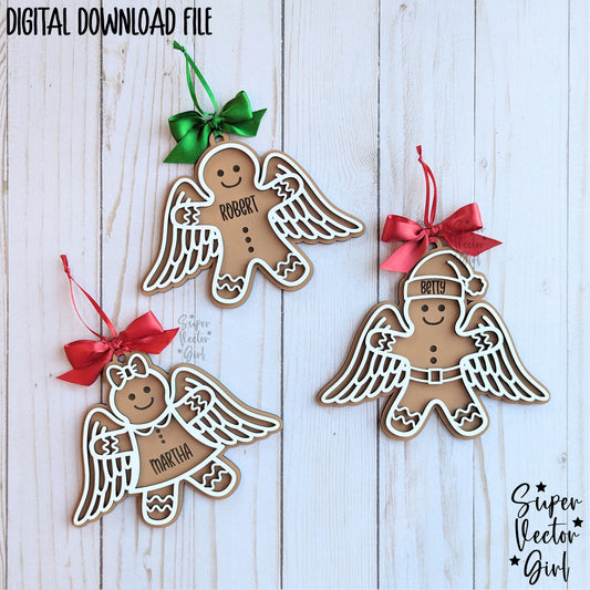 Gingerbread Man with Angel Wings, Christmas Ornament, Personalized Name Memorial, SVG, Laser Cut File, Gingerbread Angels Girl Boy Santa Gift