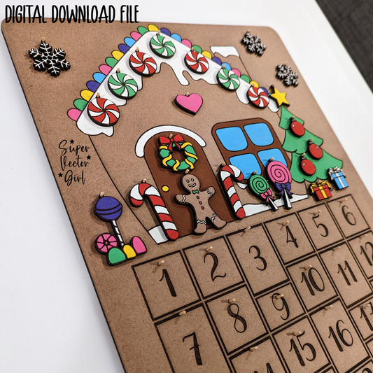 Gingerbread House Advent Calendar, SVG, Digital Laser Cut File, xTool Glowforge files, DIY Count down to Christmas, wooden ornaments