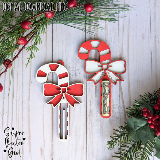 Candy Cane Christmas Money Holder, Cash Gift Ideas, SVG, Laser Cut File, files present kids money cake card personalized name stocking stuffer