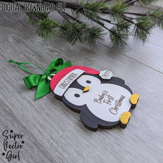 Penguin Baby's First Christmas Ornament, SVG, Laser Cut File, Personalized 1st Year Christmas, New Baby, Newborn, Shower Gift, 2024