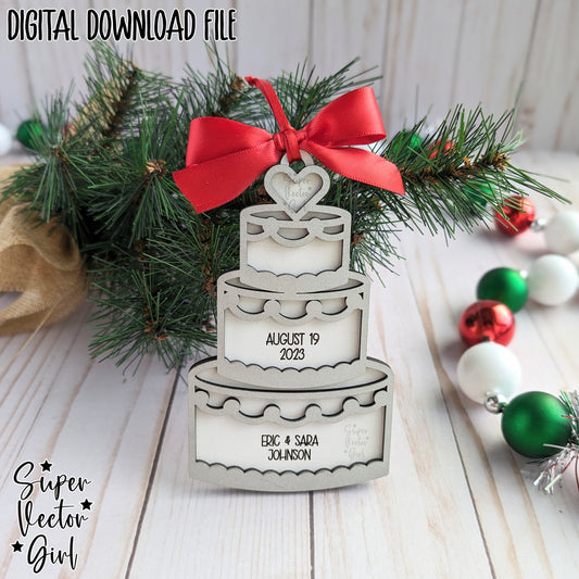 Wedding Cake Personalized Christmas Ornament, SVG, Laser Cut File files, Gift Couple Engagement, Bride, 1st First Christmas Married, Mr. Mrs. Custom Name