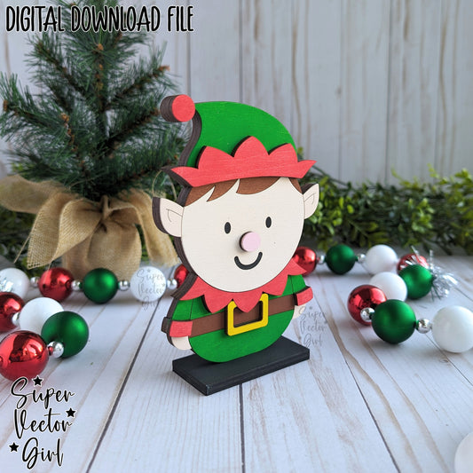 Cute Christmas Elf Shelf Sitter Sign, SVG, Laser Cut File, Glowforge xTool files, Porch Sign, Home Decor, Table Mantle Decoration, Winter Holidays