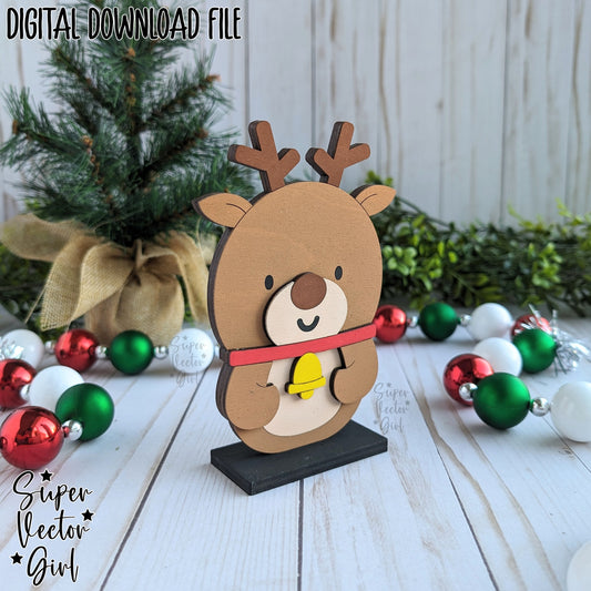 Cute Christmas Reindeer Shelf Sitter Sign, SVG, Laser Cut File, Glowforge xTool files, Porch Sign, Home Decor, Table Mantle Decoration, Winter Holidays