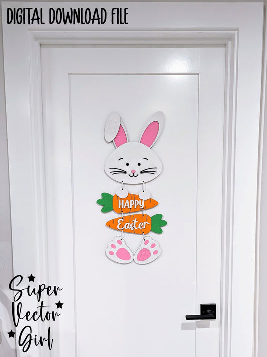 Easter Bunny Door Hanger Sign, SVG, Laser Cut File, xTool Glowforge files, Wall Decor Accent, Home Decoration, cute rabbit carrot, hanging sign