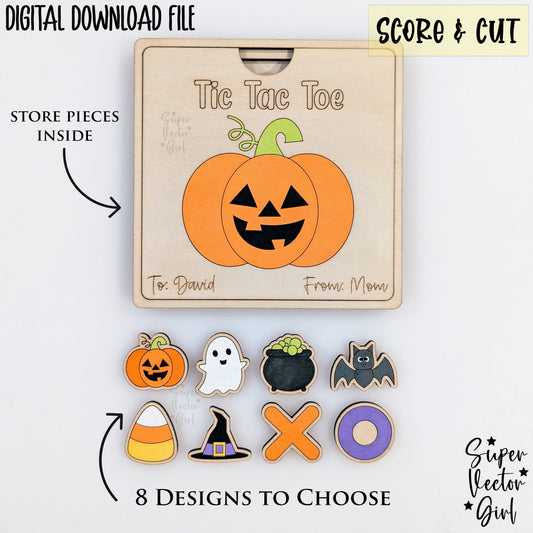 Tic Tac Toe Game with Box Lid, Halloween, SVG, Digital Laser Cut File, Boo Gift Basket Bucket Filler, Board Game for Kids