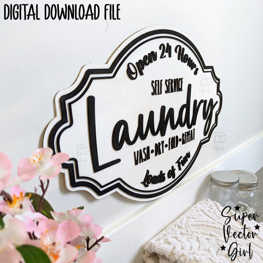 Laundry Room Self Service Door Hanger Sign, SVG, Laser Cut File, xTool Glowforge files, Wall Decor Accent, Home Decoration, Farmhouse Style Frame