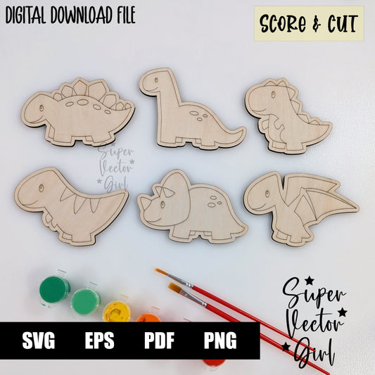 Dinosaurs DIY Paint Kit Set, SVG, Score & Cut, Digital Laser Cut File, xTool Glowforge files, Birthday Cute funny dinosaur dino trex, kid coloring