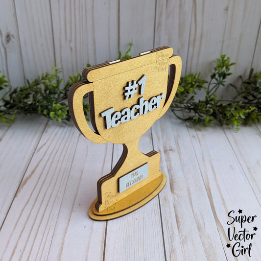 Teacher Appreciation Gift Trophy, Gift Card Holder, DIY Personalized Teacher Award, SVG File, Laser Cut File files, School Staff Gift, Money Giftcard Holder