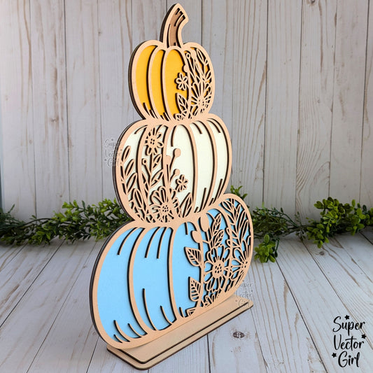 Fall Floral Stacked Pumpkins, SVG, Laser Cut File files, Porch Sign, Shelf Sitter, Home Decor Decoration, Autumn Pumpkin Tower