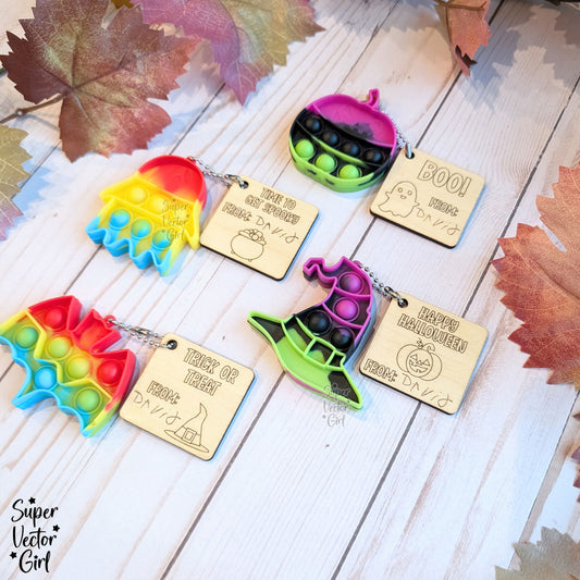 Halloween Favor Tags, Pop Fidget Toy, DIY, SVG, Digital Laser Cut File, xTool Glowforge files, Score & Cut, Pumpkin, Witch, Ghost