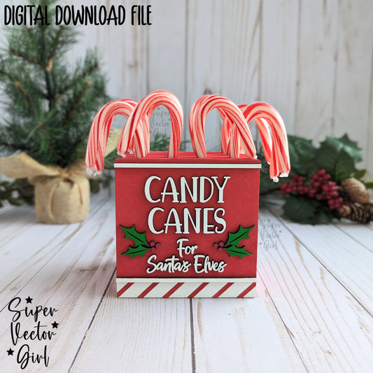 Candy Cane Holder For Santas Elves Box Cup, SVG, Laser Cut File files, Christmas Shelf Sitter, Display Farmhouse Home Decor, Wooden Storage Tray