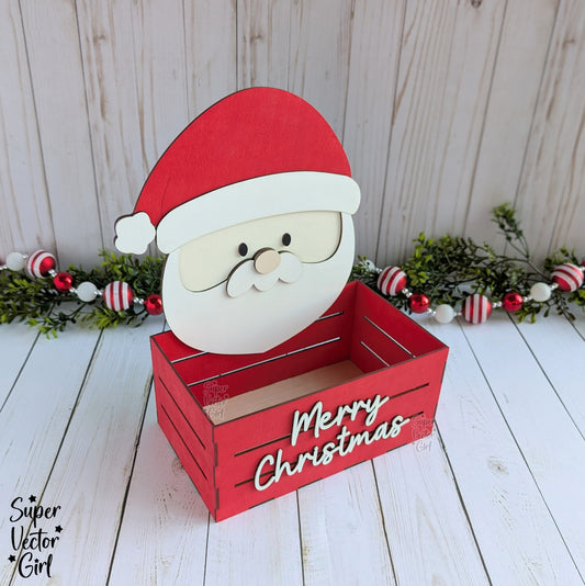 Santa Christmas Crate, Mini Basket, Christmas Eve Box, Gift Bucket, Candy Storage, SVG Laser Cut File Files, Shelf Sitter, Home Decor Decoration, Winter, Holidays