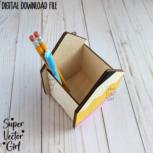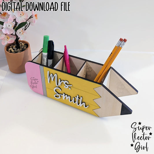 Pencil Shaped Pen Cup Holder SVG File, Desk Organizer, Personalized Teacher Appreciation Gift, Digital Laser Cut File, Desk Pens Holder, Storage Cup Basket, xTool Glowforge files, Custom Name