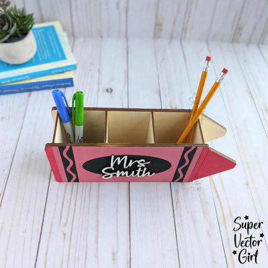 Crayon Shaped Desk Organizer for Pencils Pens, SVG File, Personalized Teacher Appreciation Gift, Digital Laser Cut File, Desk Pen Pencil Holder, Storage Cup Box Basket, Custom Name