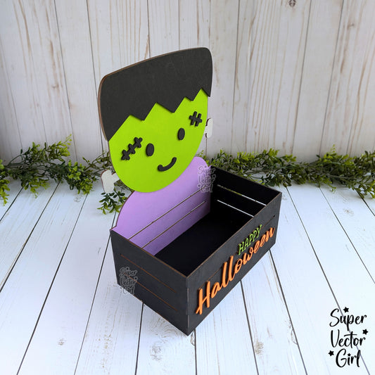 Frankenstein Halloween Crate, Monster Mini Basket, Candy Box, Boo Bucket, Trick or Treat Storage, SVG Laser Cut File Files, Shelf Sitter, Home Decor Decoration, Fall