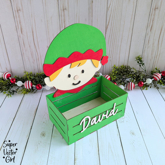 Elf Christmas Crate, Mini Basket, Christmas Eve Box, Gift Bucket, Candy Storage, SVG Laser Cut File Files, Shelf Sitter, Home Decor Decoration, Winter, Holidays
