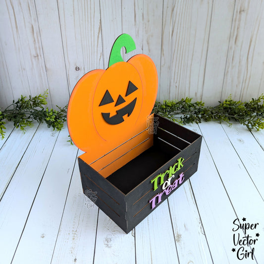 Pumpkin Halloween Crate, Jack-o'-Lantern Mini Basket, Candy Box, Boo Bucket, Trick or Treat Storage, SVG Laser Cut File Files, Shelf Sitter, Home Decor Decoration, Fall