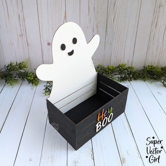 Ghost Halloween Crate, Mini Basket, Candy Box, Boo Bucket, Trick or Treat Storage, SVG Laser Cut File Files, Shelf Sitter, Home Decor Decoration, Fall