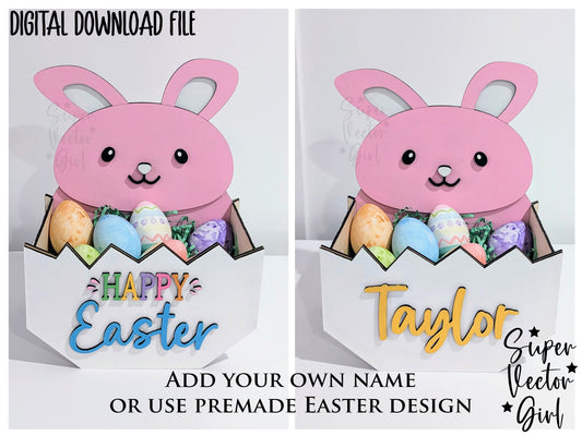 Bunny Only Easter Basket Crate, Easter Treats Box, SVG, Laser Cut File, xTool Glowforge files, Cute rabbit in egg, gift box, hatching, spring storage