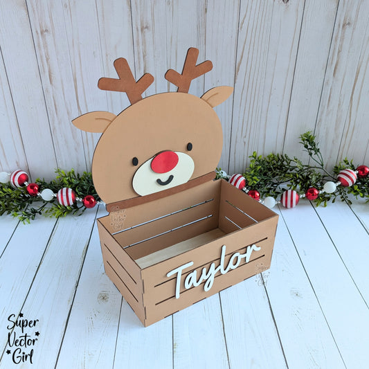 Reindeer Christmas Crate, Mini Basket, Christmas Eve Box, Gift Bucket, Candy Storage, SVG Laser Cut File Files, Shelf Sitter, Home Decor Decoration, Winter, Holidays