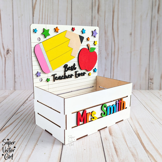 Small Teacher Gift Basket Crate SVG File, Personalized Teacher Appreciation Gift, Digital Laser Cut File, Desk Pen Holder, Wooden Storage, xTool Glowforge files, Custom Name