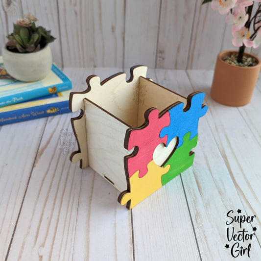 Autism Puzzle Pencil Pen Cup Holder SVG File, Desk Organizer, Digital Laser Cut File, Desk Pens Holder Gift, Storage Cup Box, Home Office