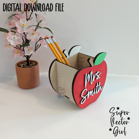 Apple Pencil Pen Cup Holder SVG File, Personalized Teacher Appreciation Gift, Desk Storage Basket, Digital Laser Cut File, xTool Glowforge files