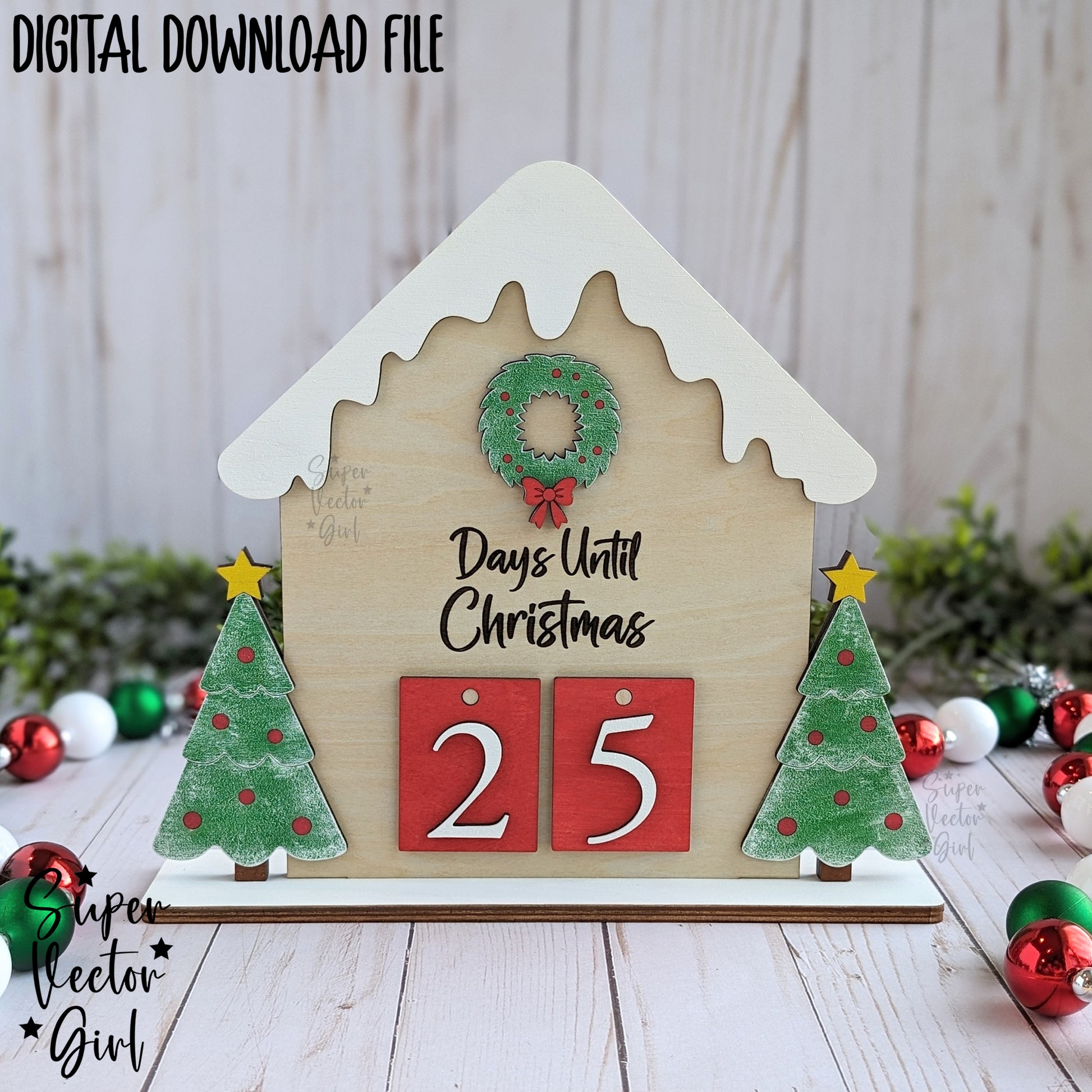 Christmas Countdown House, SVG, Laser Cut File files, Count down to Christmas, Advent Calendar, Farmhouse Rustic, Wooden Home, Wreath Tree